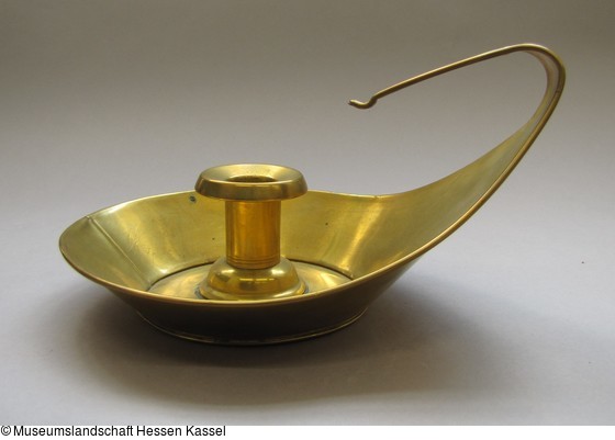 Messingblech, zweiteilig (Leuchterkopf separat), gestanzt und gelötet. |