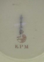 KPM f. (Braune Marke: Reichsapfel, darunter KPM (Malereimarke); darüber blaues Szepter; Prägestempel: f.);