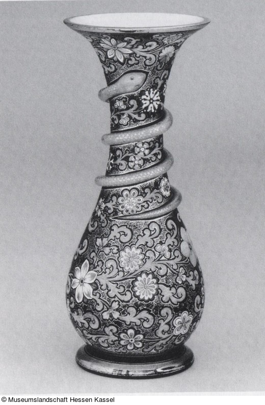 Überfangglas-Vase mit orientalischen Blumen und Schlange |