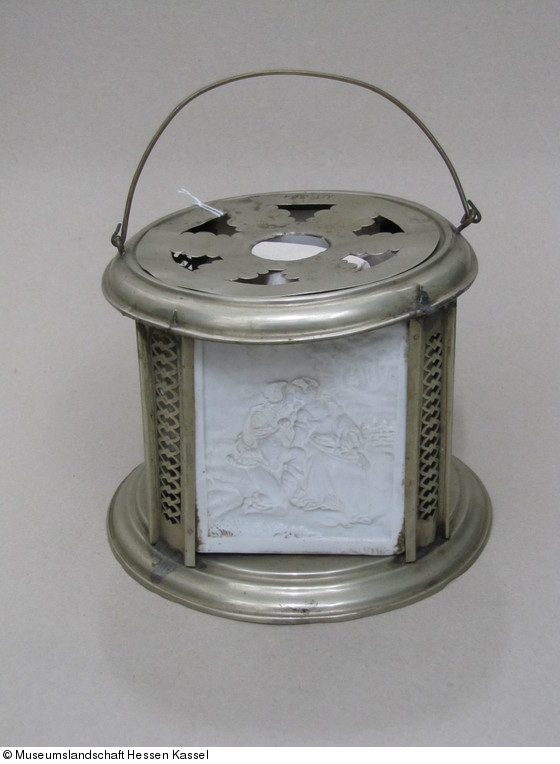 Die Laterne besteht aus vier Lithophanien, die verschiedene Szenen mit Kindern sowie einem mittelalterlich gekleideten Paar zeigen. Die Technik der durchscheinenden Porzellanplatte wurde um 1826 in Paris entwickelt und alsbald von vielen Manufakturen nachgeahmt.