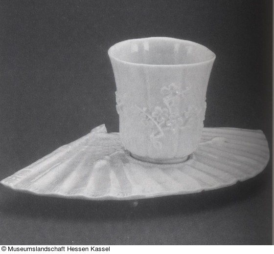 Koppchen und Untertasse in Form eines Fächers