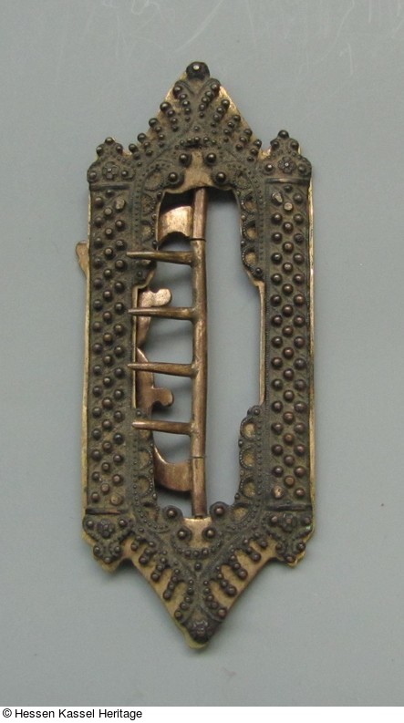 Gürtelschnalle aus Semilor und Kupfer. mit Punkten verziert