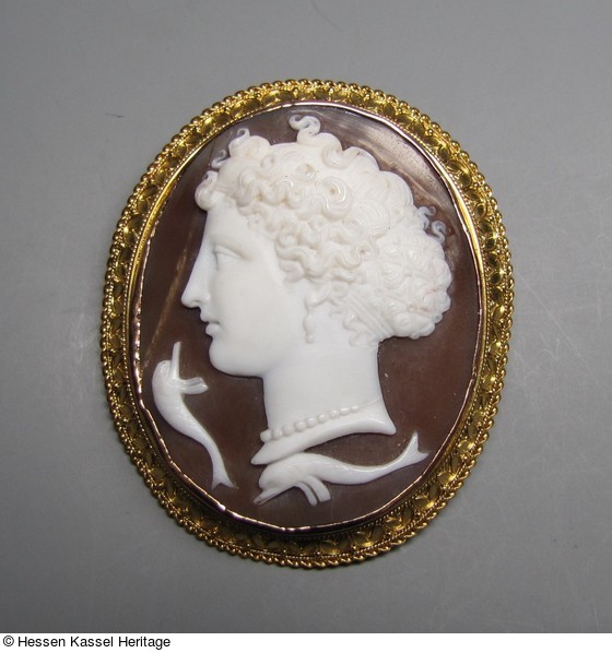 Hochovale Anhängerbrosche mit Muschelkamee (Arethusa) |