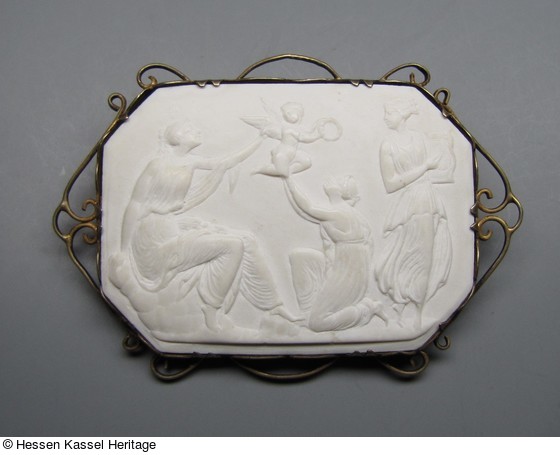 Querrechteckige Brosche mit einem Relief: Wer kauft Liebesgötter?