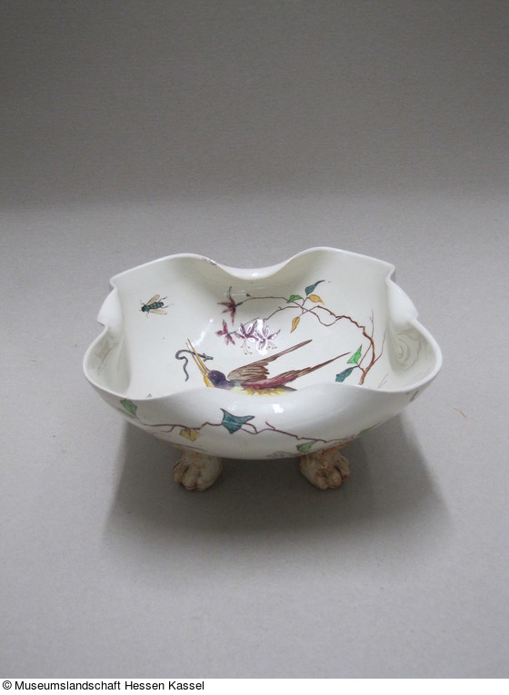 Schale mit Umdruckdekor auf Löwenklauen |