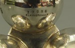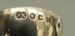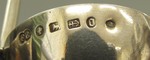 an äußerer Schalenwand: 17286 Elkington & Co.; am Schalenrand: "FE", "O". (Beschauzeichen: "FE", Frauenkopf, Löwe, Anker, "O".); am Stiel: O (Beschauzeichen: ?, Frauenkopf, "O".);