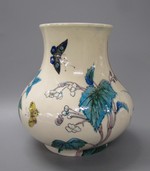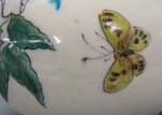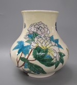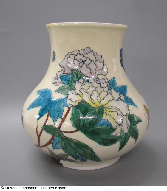 Fayence, hellgrauer Scherben, crèmefarbene Glasur; polychromer Dekor, teilweise in Pâte-Auftrag. |