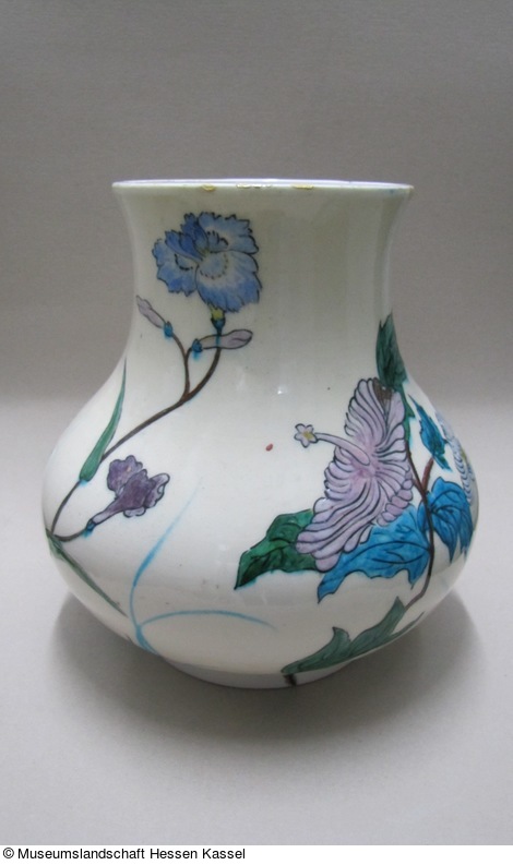 Fayence, hellgrauer Scherben, crèmefarbene Glasur; polychromer Dekor, teilweise in Pâte-Auftrag. |