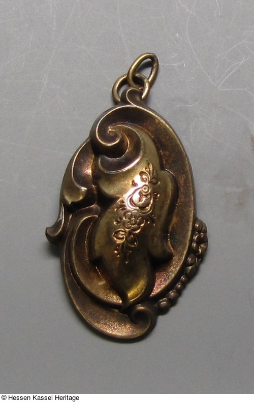 Silbervergoldeter Anhänger in Form eines stilisierten Blattes