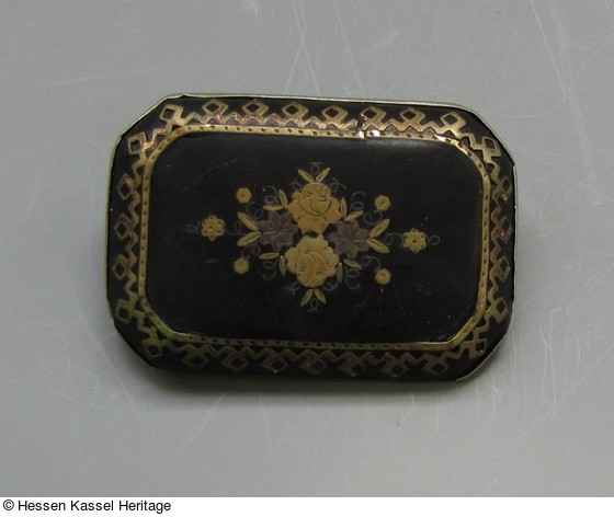 Lack mit Pikée aus Silber und Bronze, vergoldet, graviert und punziert, Rückplatte Silber. |