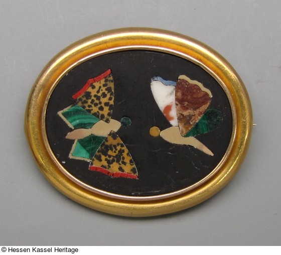 Ovale Pietra Dura-Brosche in Goldrahmen |