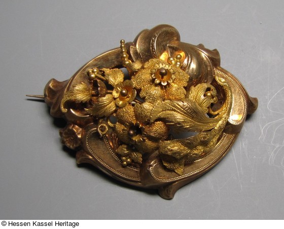 Ovale silbervergoldete Brosche mit Blumenstrauß |