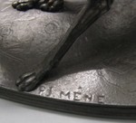 Bronzeguß, schwärzlich patiniert, teilweise bronzeähnliche Abnutzungsstellen. |