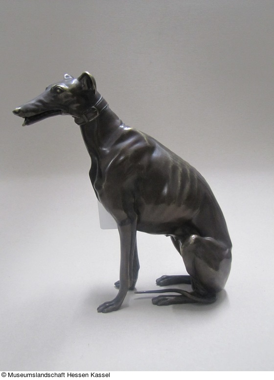 Visitenkartenhalter in Form einer sitzenden Windhündin |
