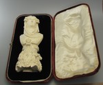 Elfenbeinschnitzerei in Originalschatulle aus dunkelrotem und blauem Samt. |