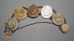 Kette, Sicherungskette und Halterung: Silber, vergoldet; Kameen: Kalkstein, Muschel. |