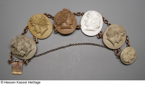 Silbervergoldetes Armband mit antikisierenden Lavakameen