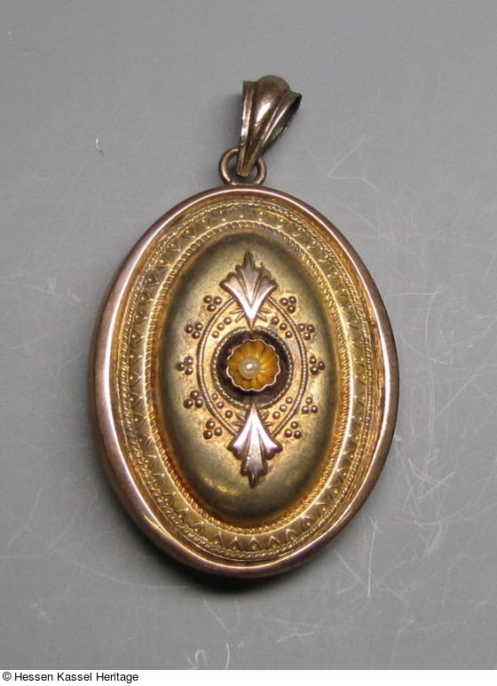Ovaler goldener Medaillon-Anhänger mit Perle