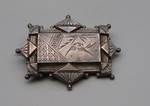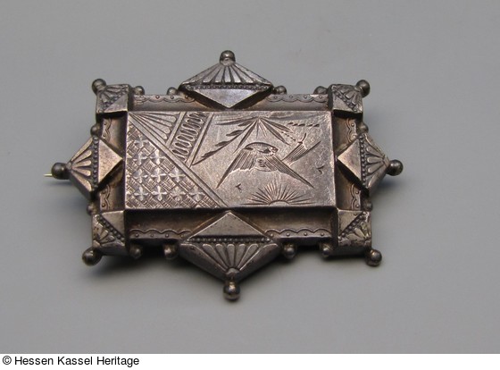 Silberne rechteckige Medaillon-Brosche in japanischem Stil |
