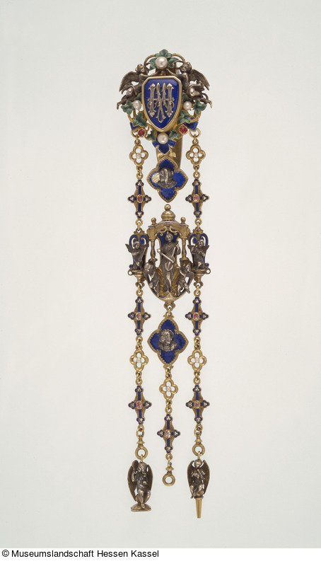 Silbervergoldete Chatelaine in gotisierenden und Renaissance-Formen