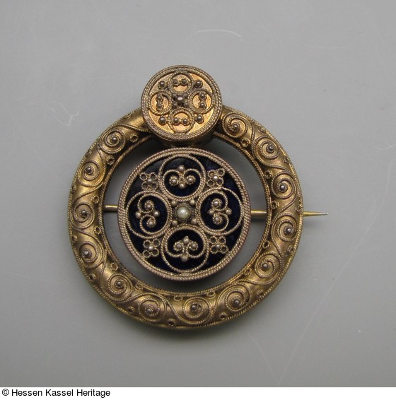 Bronzevergoldete Ringbrosche mit rundem Anhänger