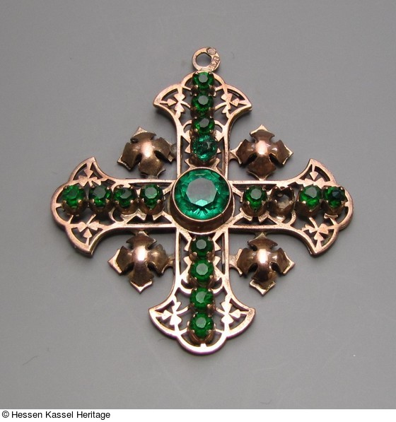 Goldener gotisierender Kreuzanhänger mit Tumalinbesatz