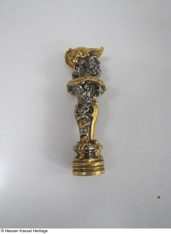 Petschaft im Rokokostil mit Kopf des Menelaus