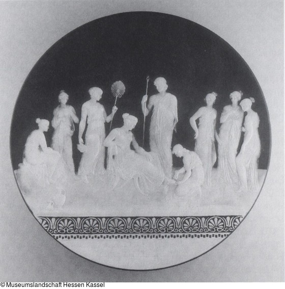 Wandteller mit Szene aus dem Trojanischen Krieg (Toilette der Helena) |