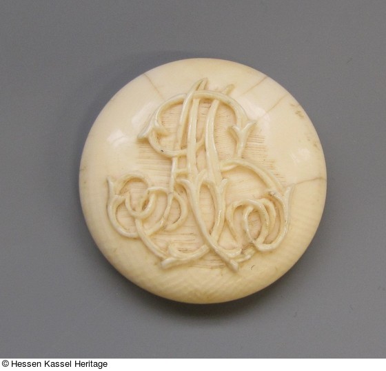 Großer Knopf aus Walroßzahn mit Monogramm AB