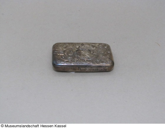 FG, 800 (Punzen: FG, 800 und Krone mit Halbmond.); auf der Vorderseite: Erich Bertog (Gravur); Rückseite: EK Weihnachten 1892. (EK (ligiert));