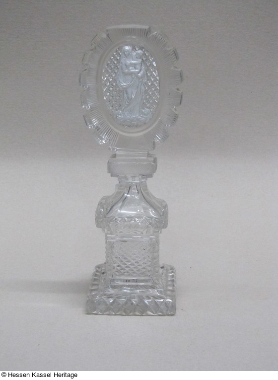 Geschliffener Kristallglasständer mit eingeglaster Paste: Maria mit Kind