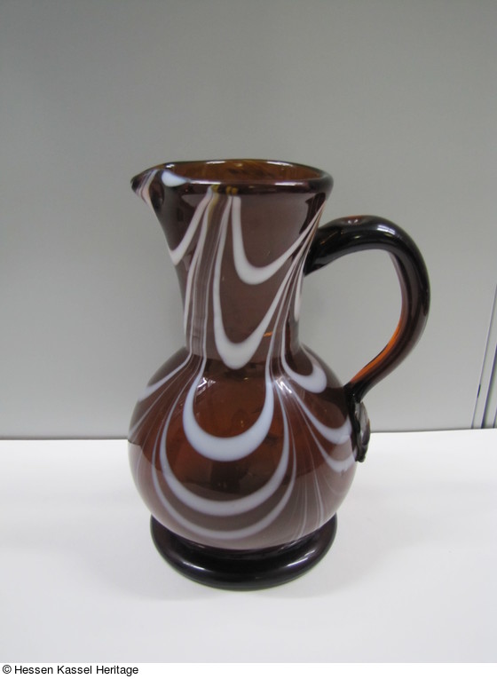 Kanne aus braunem Glas mit weißer Fadenauflage, gekämmt