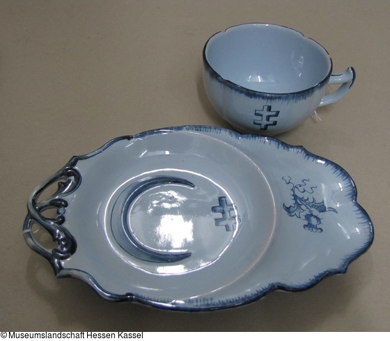Frühstückstasse mit Lothringer Kreuz und Distel aus dem Stadtwappen Nancy