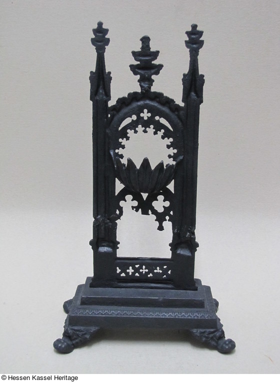 Eisenguß, ursprünglich schwarz gebrannt. Aus drei Teilen gefertigt. |