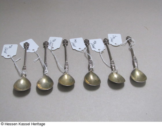Die Namensstempelung bezeichnet nicht den Hersteller, sondern den Kasseler Juwelier Scheel, über den die industriell gefertigen Löffel erworben wurden.