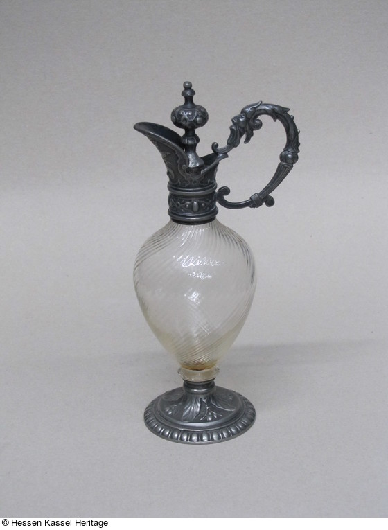 Farbloses Glas, formgeblasen, Hartzinn, gegossen. |