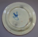 Auf der Unterseite: Stehender Hahn (einen Fuß erhoben, in Blau, mit Pinsel aufgetragen, in Unterglasur);