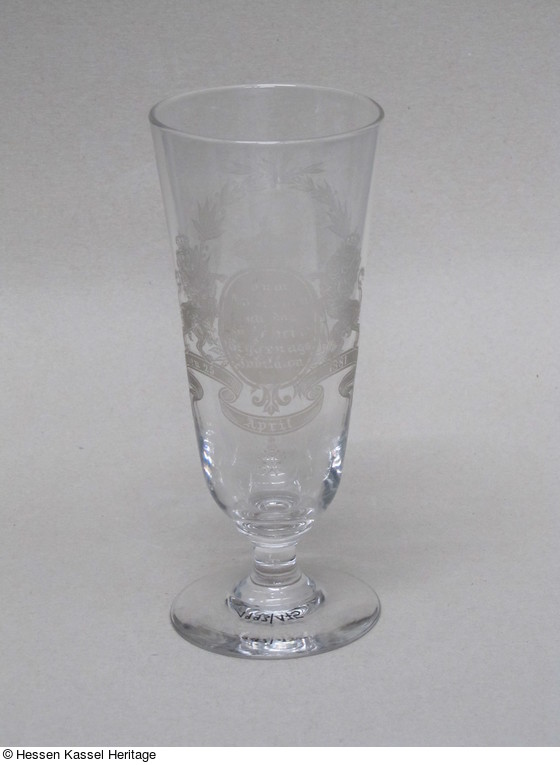 Hohes Trinkglas mit geätztem Dekor zum fünfzigjährigen Regierungsjubiläum von Herzog Wilhelm von Braunschweig |