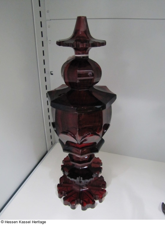 Rubinglas, geschliffen im Schäl-, Keil-, Fächer-, Stern- un Facettenschliff. |