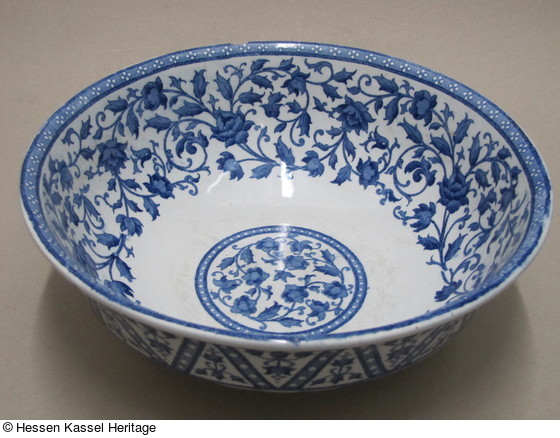 Steingutschüssel mit blauem Umdruckdekor nach persischen Vorbildern |