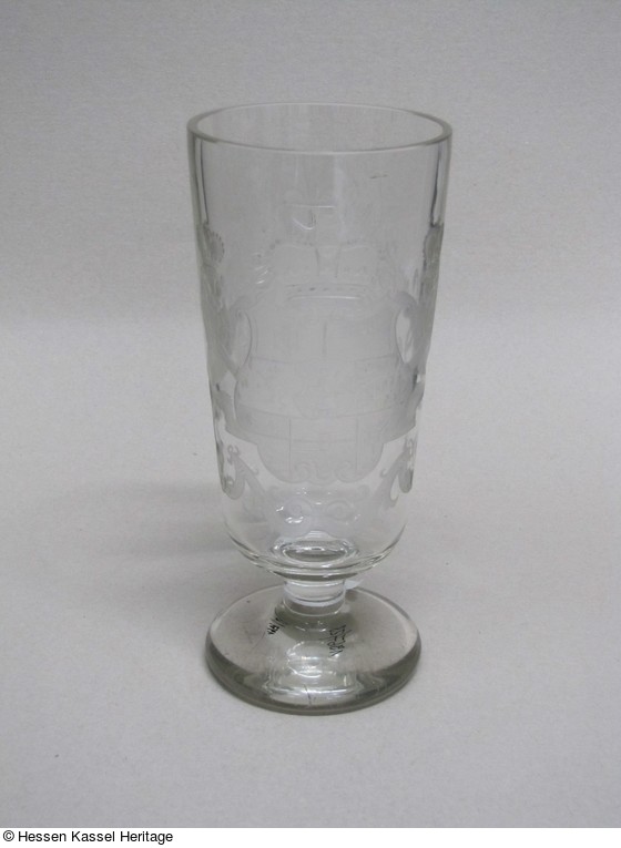 Glaspokal mit hessischem Wappen und Wappen der Stadt Kassel