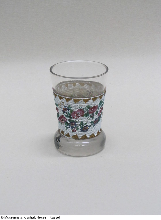 Venezianische und böhmische Glasperlen waren im Biedermeier beliebt für weibliche Handarbeit. Sie wurden gestickt, gewebt oder genetzt. Für gestrickte Perlenmanschetten eigneten sich besonders die "Wiener" Ranftbecher, deren vortretender Fuß ein Abgleiten der Manschette verhinderte.