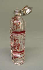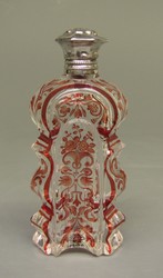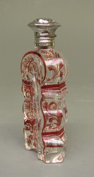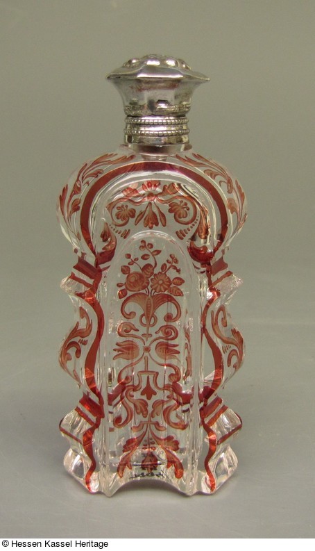 Flakon aus farblosem Glas, geschliffen und mit roter Transparentmalerei verziert |