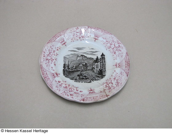 Bildteller mit zweifarbigem Umdruckdekor: SCHLOSS ZU STOLBERG |