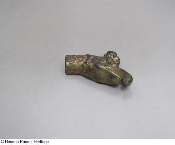 Gußeiserner Knauf in Form eines bekrönten Adlerkopfes |
