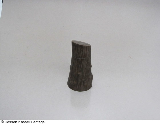 Dose aus Bronze in Form eines abgesägten Baumstammes |