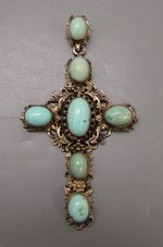 Kreuzanhänger aus Silber, besetzt mit Türkisen
