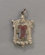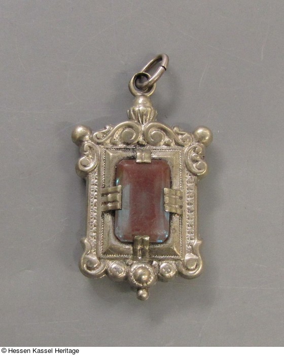 Hochrechteckiger, vernickelter Anhänger in Form eines gerahmten Bildes
