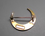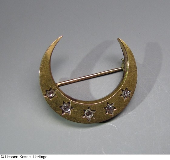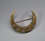 Goldene, halbmondförmige Broschemit fünf Altschliffdiamanten