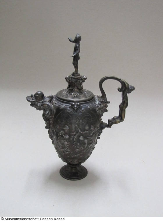 Eisen, Deckel und Henkel aus Messing, vergoldet, gegossen, in 5 Teilen hergestellt.